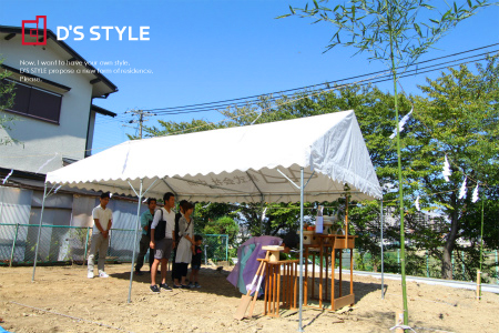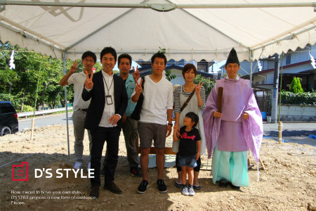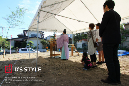 工事の安全と無事完成を願って、家族みんなで四方払い。