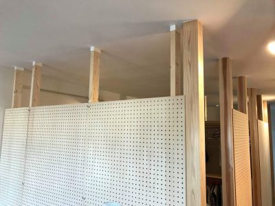 このように簡易的な柱と有孔ボードで