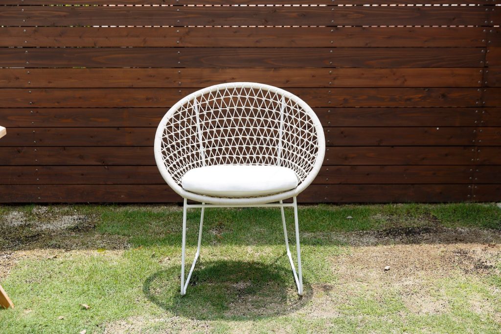オランダのガーデン家具ブランドのチェア。ブランド名のWovenは「織物」を意味するというだけに美しい編み込みが特徴。ロープ部に熱可塑性ポリプロピレンという繊維を使うことで野外に使える耐久性を持つ。リビングにもマッチする繊細なデザインも魅力。