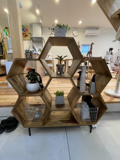 階段下の土間スペースにお洒落なラックが!