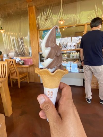 私も暑いので、山羊のソフトクリーム(ミックス)を食べる事に…