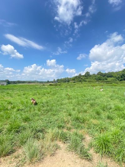 自然放牧される山羊たちも暑いのか山の涼しいところへ避難していきました(笑)