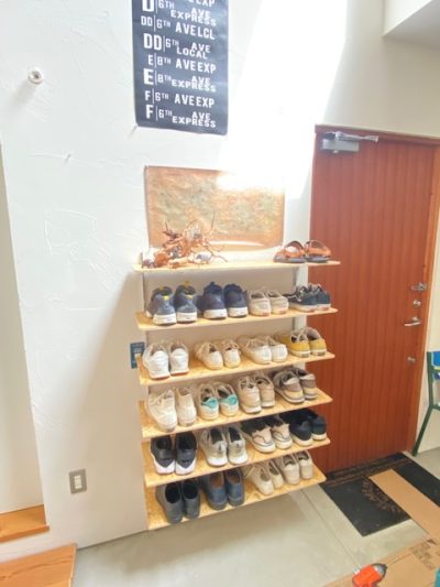 以前は、足場板とブロックで靴を収納するスペースを作っていたのですが…