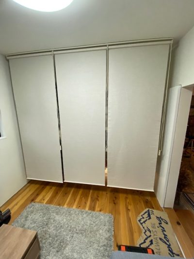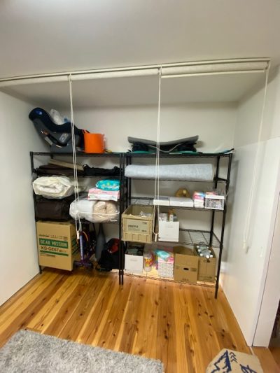 その他に、ハナレに置いていた収納ラックを隠すためにロールスクリーンを設置したんですが、ちょうどよいサイズが無く幅800㎜のロールスクリーンを3つ購入して取付けたんですが…