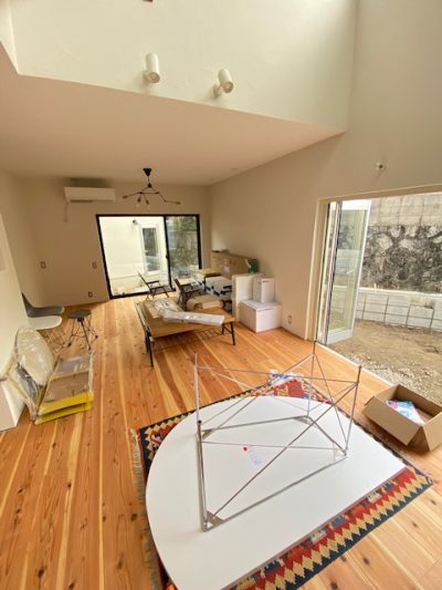 さて、本日は9月にオープンしますモデルハウスの家具搬入の日でした!