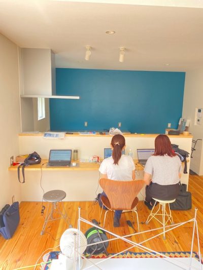 △家具の搬入途中でも、日々の業務も怠らない3人…(笑)