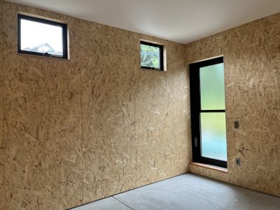 オプションで壁をOSB仕上げにされているので、また雰囲気が変わりますね。