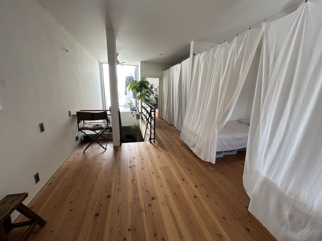 依然と模様替えをされたそうで寝室を大きなフリースペース側に持ってきて奥のお部屋をセカンドリビング兼、娘さんのお部屋にされたそうです。