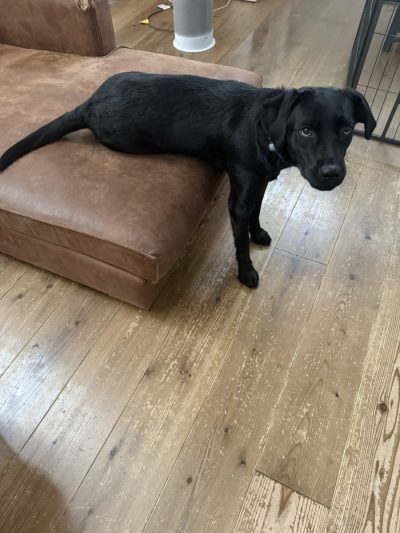 なぜか後ろ脚だけソファーに座っているきゃびあさん。