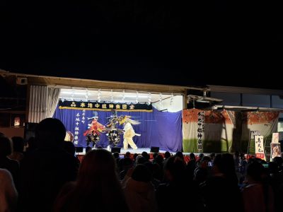 神楽が始まっていて、太鼓の音が鳴り響いていました🪘