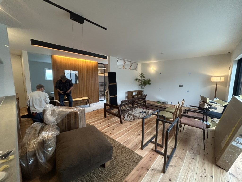 ここ数日で新しい福山モデルハウスの植栽工事と家具搬入を行いました。