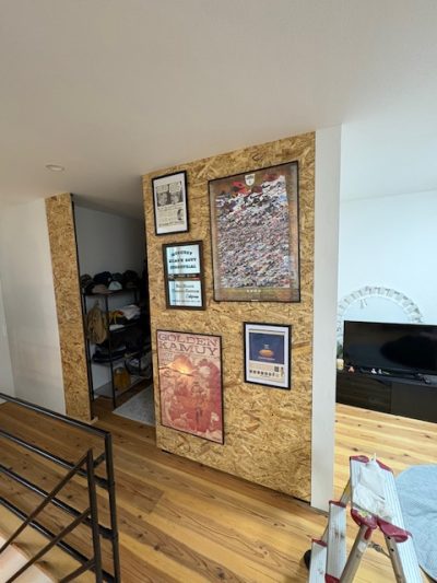 また、2階フリースペースにもOSB板を張りオシャレな空間に…