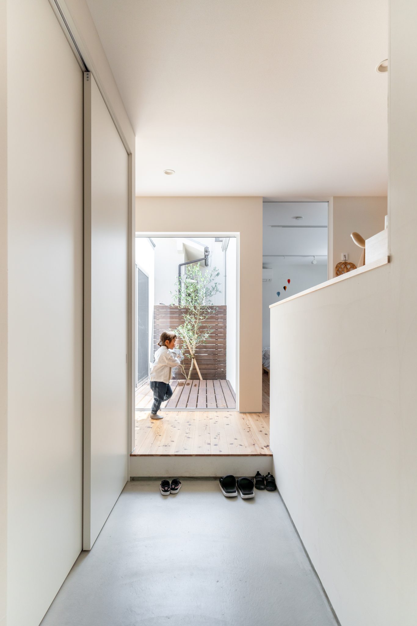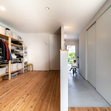 :平屋でもカスタマイズできる部分があるんです。たとえば玄関から入って、土間の先が中庭になっているのですが、ここを砂利にするか、ウッドデッキにするか…というところは悩みましたね。