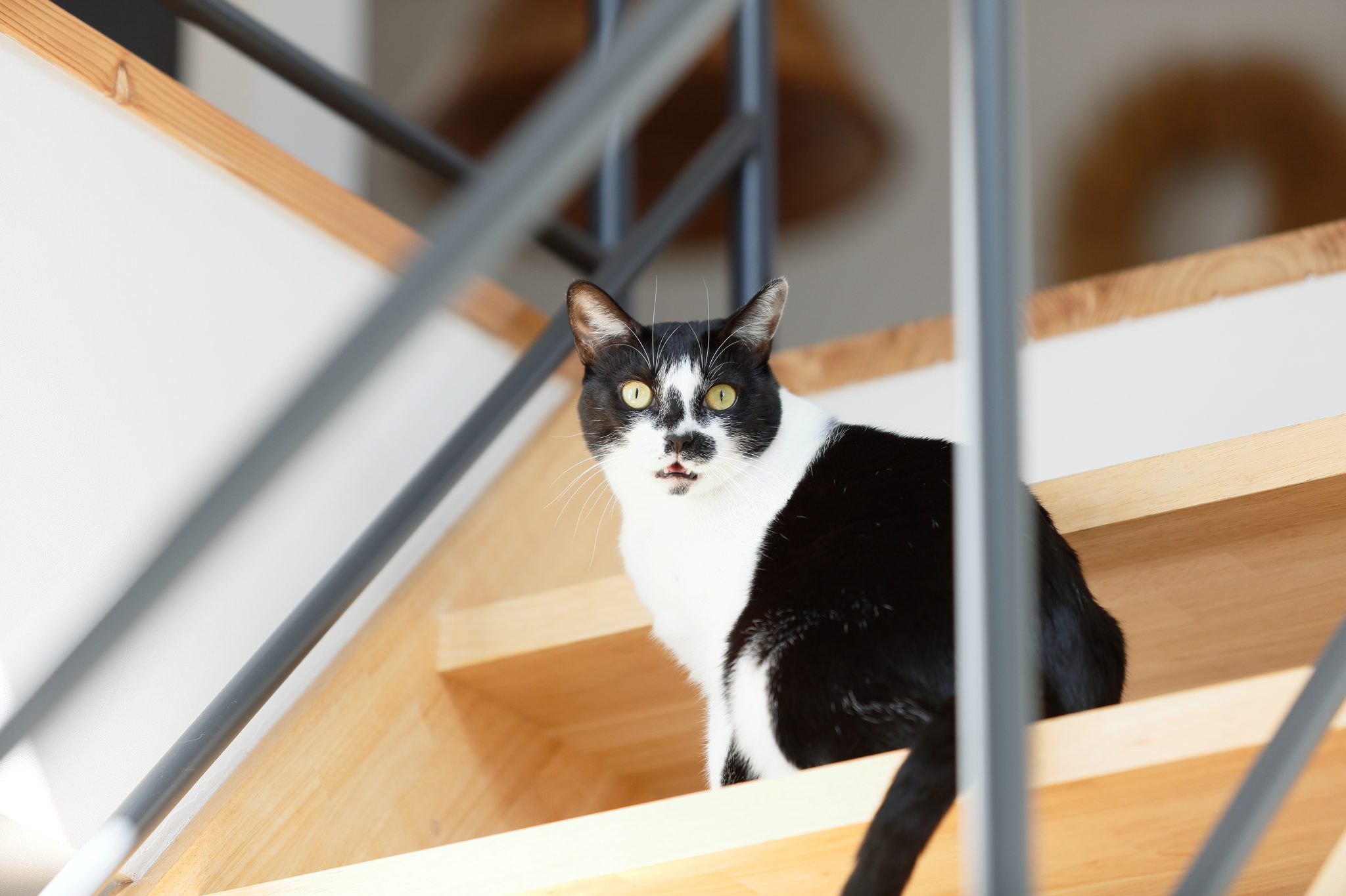 夫:引っ越したら、「初めは怖がって隠れたりするかな?」と思っていたら、もう「前から住んでましたけど?」みたいな顔して、二階に上がったり降りてきたり過ごしはじめたのを見たときには、うれしかったですね。