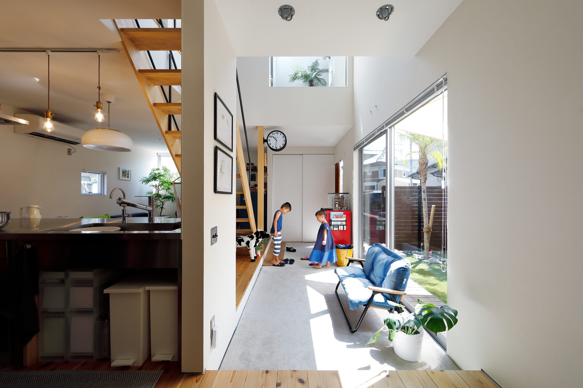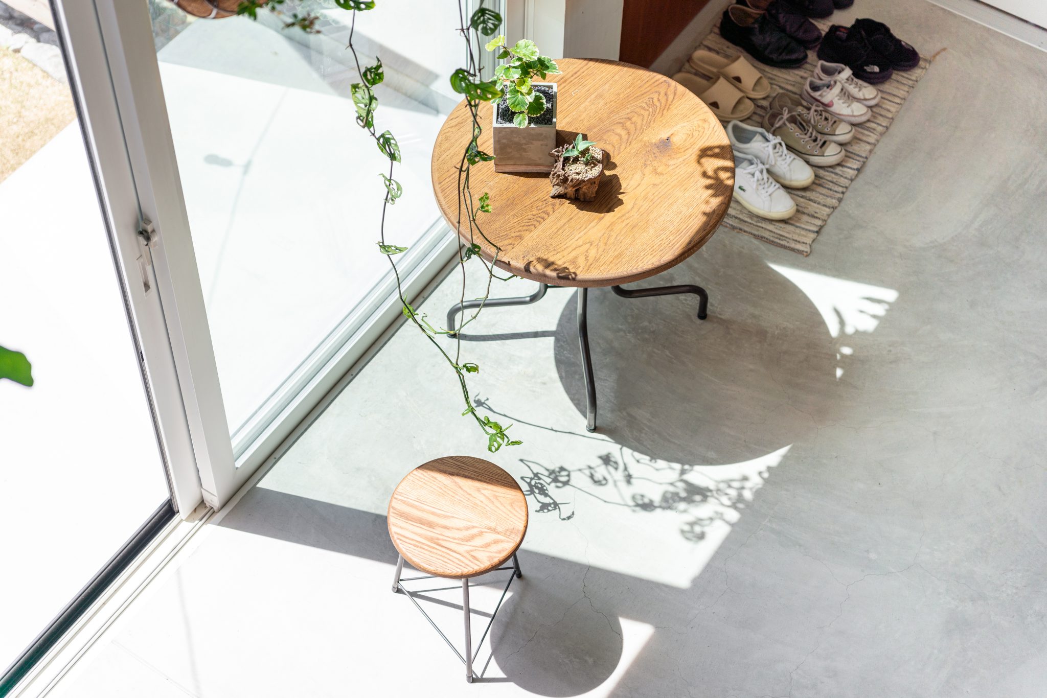 玄関としての機能はもちろん、家の外としても中としても使えるのが土間のメリット。