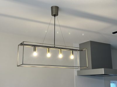 その中でも圧倒的に人気なのがペンダントライトです。リビングダイニングだけではなく、各スペースでもよく見かけます。というのも、標準で設置されている壁面の豆電球(クリアボール球)、スポットライトやダウンライト、玄関先のビームライト、などはとてもシンプルなのでそれ以外の部分で皆さんのこだわりが見られます。そしてその照明が、家全体の雰囲気作りに大きな役割を果たします。