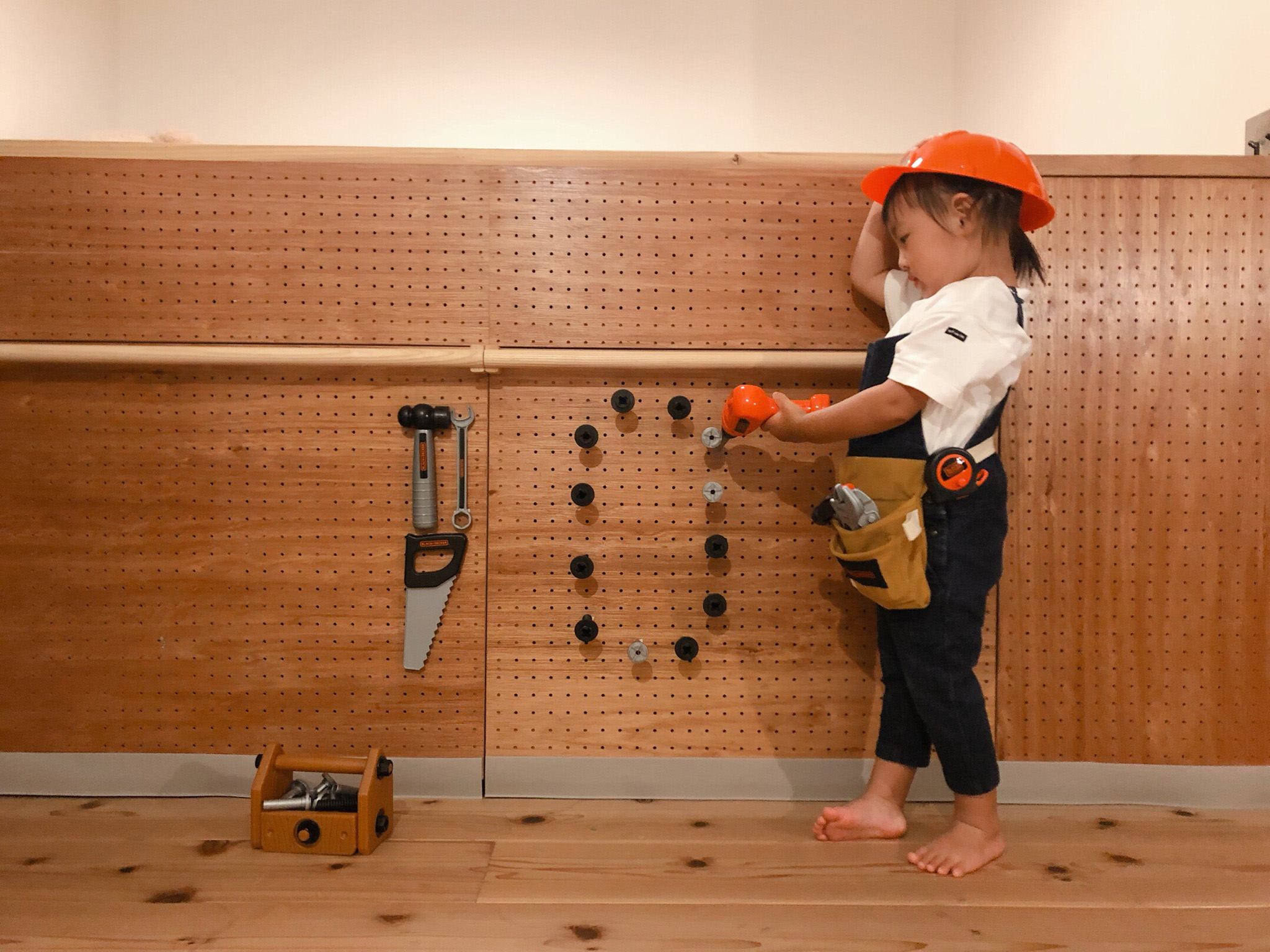 おもちゃのネジと工具で『10』を作りました。 住み始めて2年、階段下に収納を作ったり、小上がりを作ったり、クローゼットをDIYしたり毎回楽しんでいます。