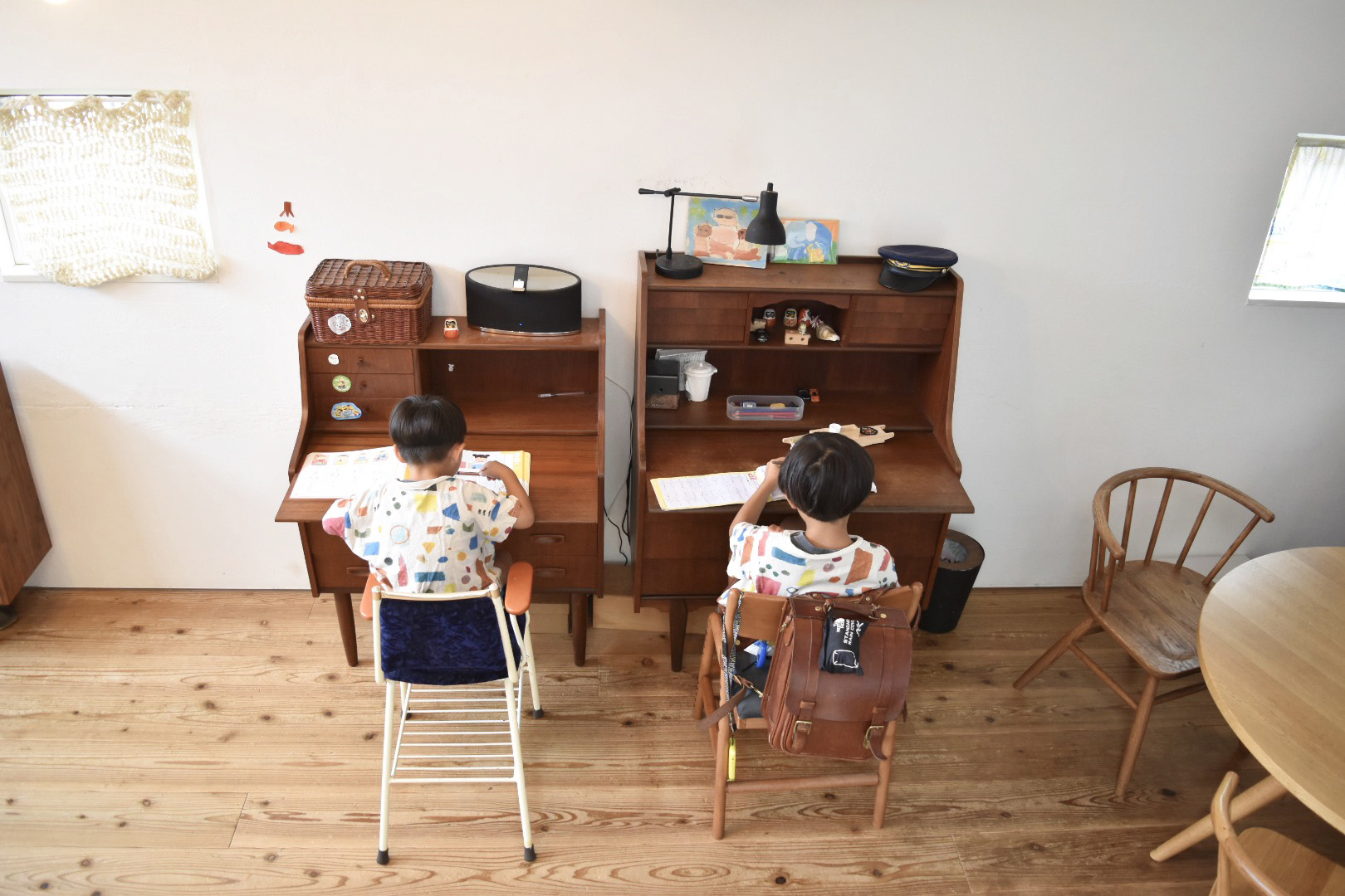 って一度でいいから言ってみたい。 勉強してるフリの上手い坊ちゃん達です。 来年一年生になる弟坊ちゃんの机が追加されました。