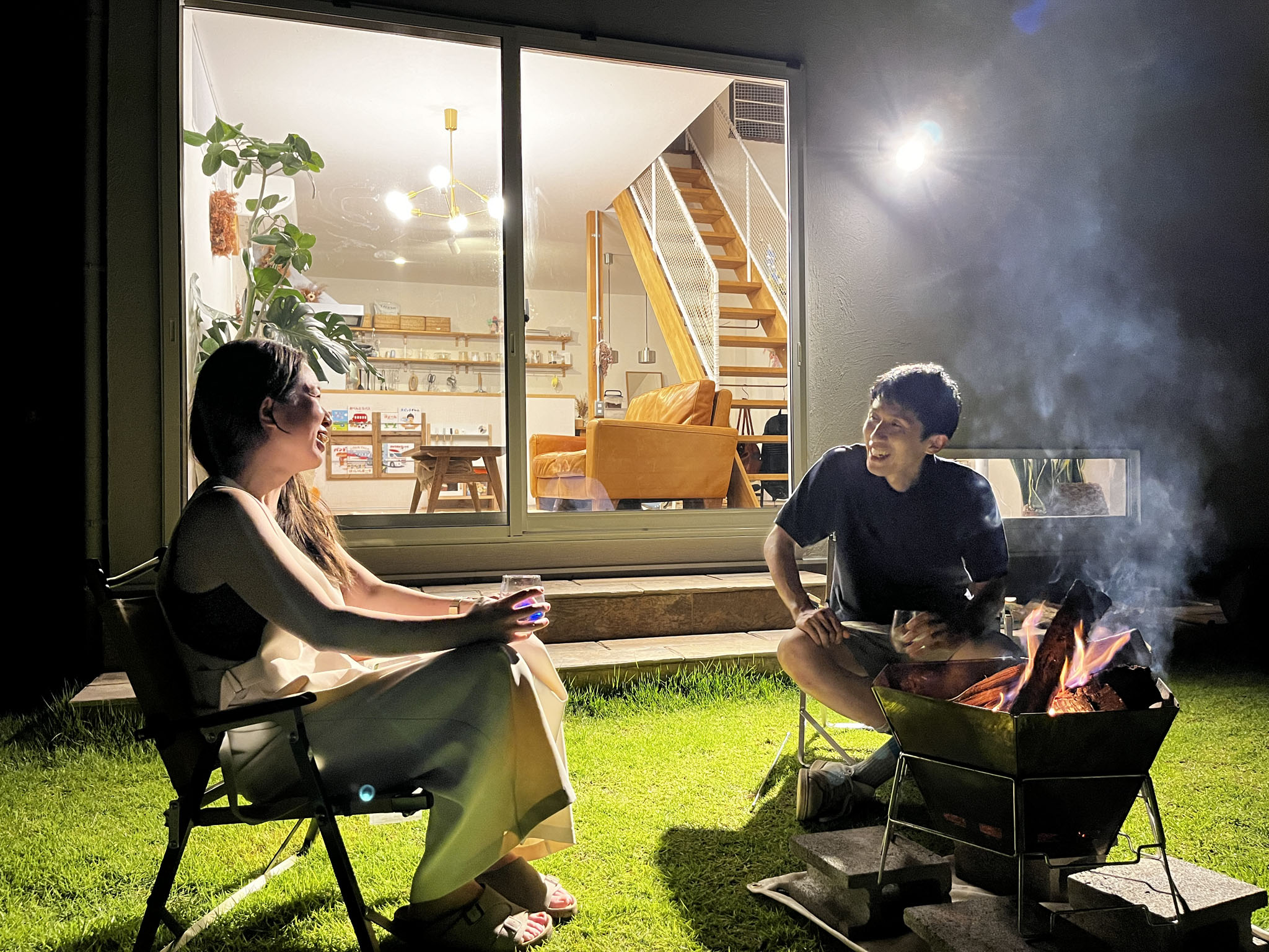 子供達が眠った後の夫婦時間。 天然芝のお庭での焚き火。 子供達のことや、日常の何でもない話もいつもよりゆっくり深く話せるこの時間が大好きです。