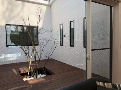 中庭のウッドデッキも