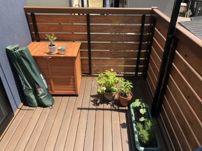 無垢材造作の2階バルコニーも