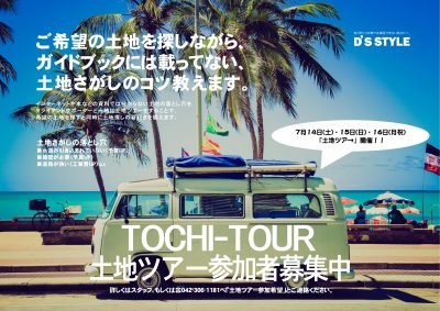 『土地ツアー』in モデルハウス 開催! date: 7月14日(土)・15日(日)・16日(月祝) time: 9:00~18:00 loca: 東京都東村山市恩多町 (詳しくはお問合せください) 来場予約する 会場ご案内図 > お問い合わせ > ご希望の土地を探しながら ガイドブックには載っていない 土地探しのコツを教えます!! 東村山市にある 【モデルハウス】での開催となります。 土地探しの様々なノウハウを学びながら 【カッコいい家】の見学も出来ちゃいます。 お気軽にご予約くださいませ。 ○●○●○●○●○●○●○●○●○●○●○ 〇 D’S STYLE東京西 公式 Facebook → こちら Instagram → こちら Pinterest → こちら UP リストに戻る BACK NEXT