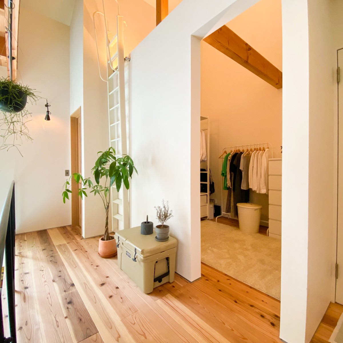 妻:2階のWICは梁の上にLEDテープを貼って、ほわっと明るい間接照明に。