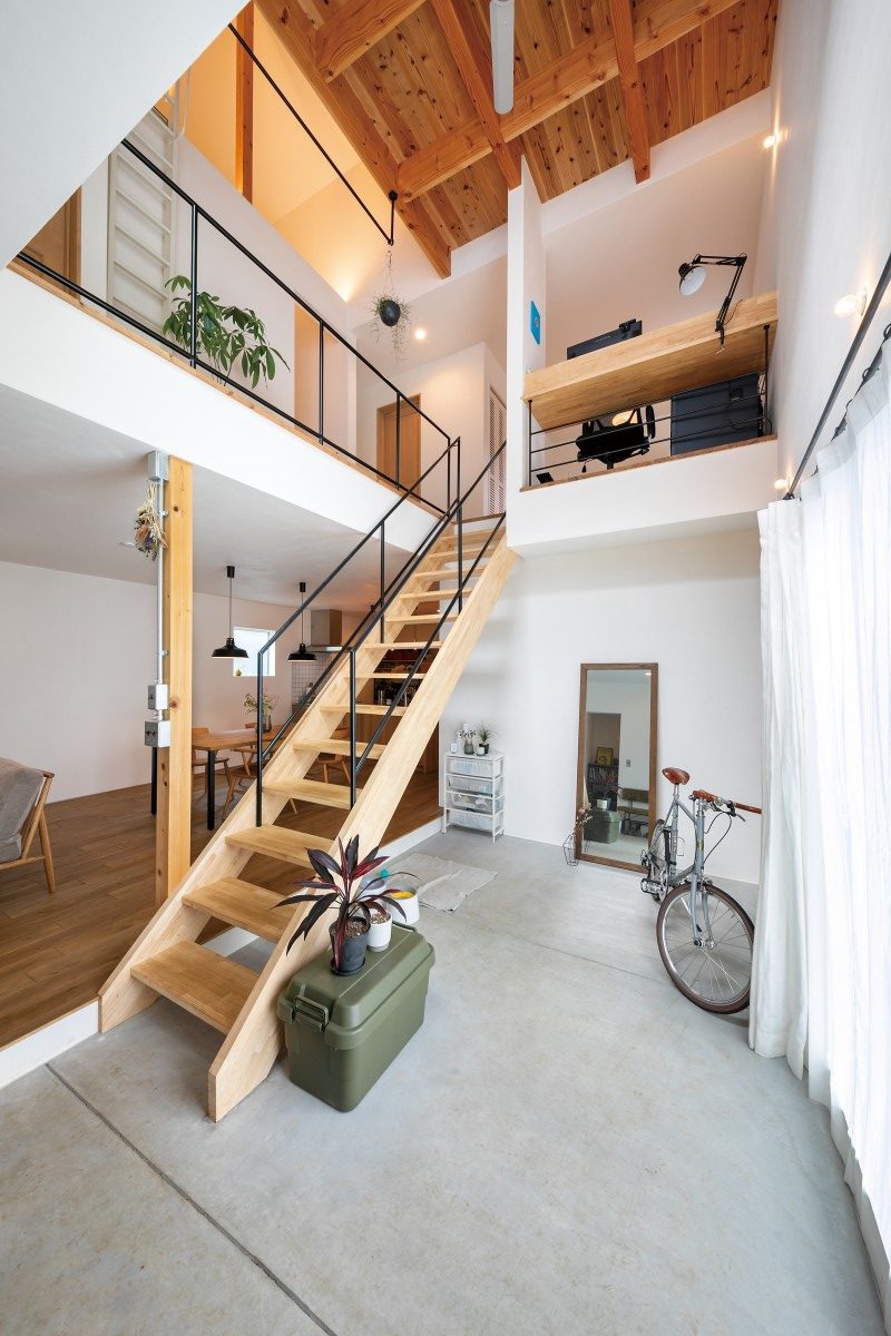 夫:うん、そう。我が家はキャンプや自転車などのアウトドア用品が多いので、標準で広い土間や吹抜けがある間取りにワクワクしましたね。
