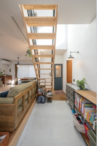 夫:小さくてもいいので土間は欲しいと思っていました。自分の趣味スペースとして、土間で日曜大工したりできたらいいなと。ただ、今は子供たちのスペースになってしまってますが…(笑)。あとは鉄骨階段ですね。