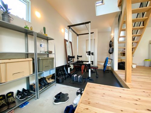 夫:僕は広い土間がこだわりですね。トレーニングが趣味なので、マシンを置いて、トレーニングルームにしています。