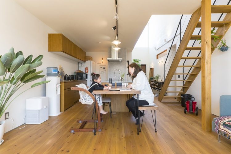 例えば、LDK。最初はリビングに対面するキッチンを考えていたんですが、それだと土間収納との関係性や水まわりへの動線がうまくいかないなと悩んでいたところ、設計士さんがキッチンとダイニングを縦にレイアウトする案を出してくれて。そうすることで、すべてがうまくまとまったので「さすがプロ!」と感激しましたね。